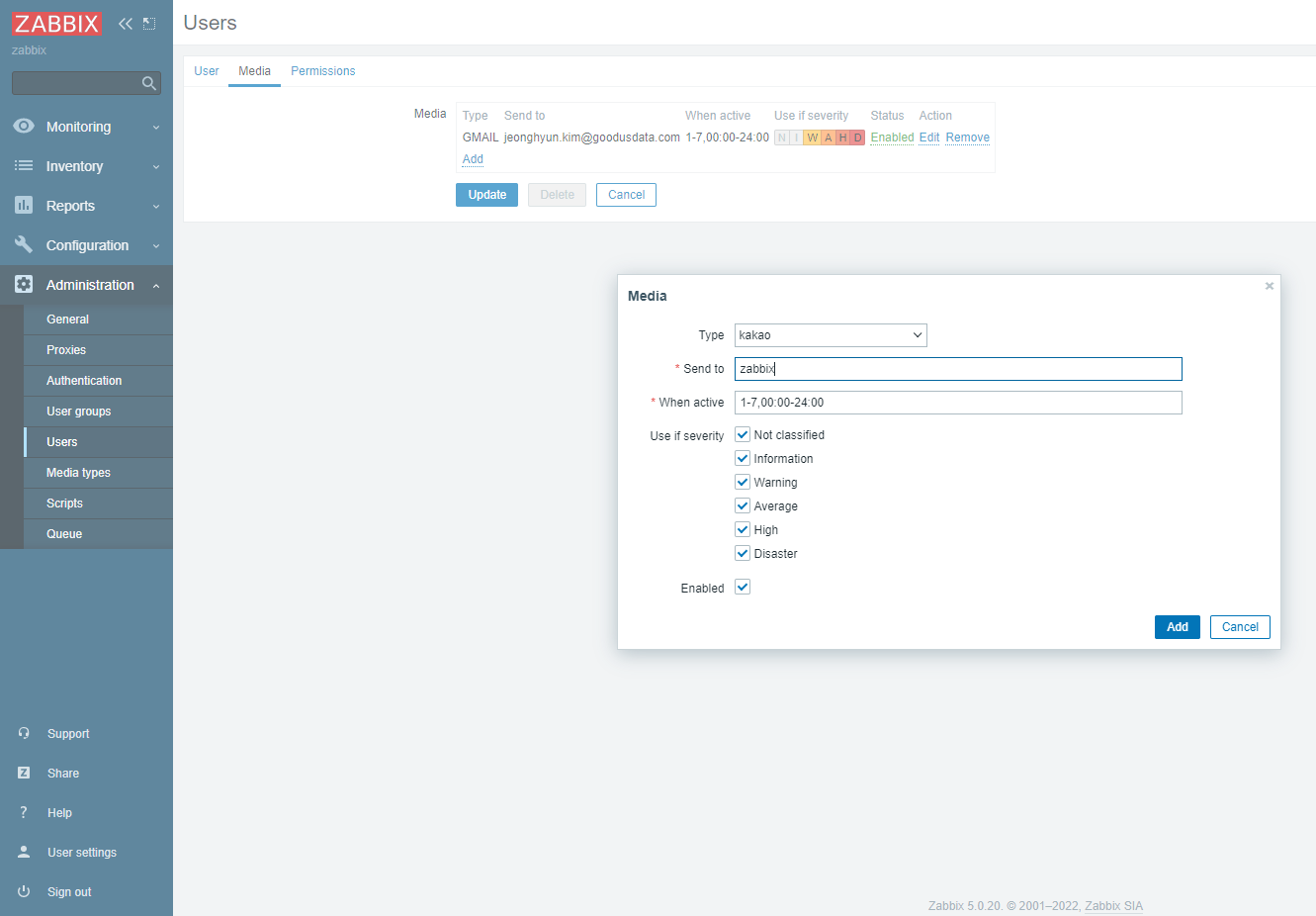 [ Zabbix - 카카오톡 알림 설정 ] part 5-1