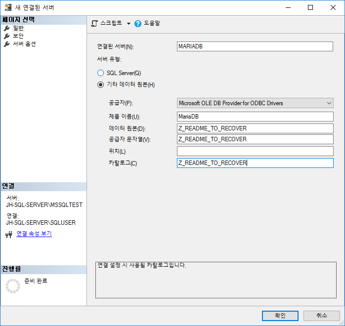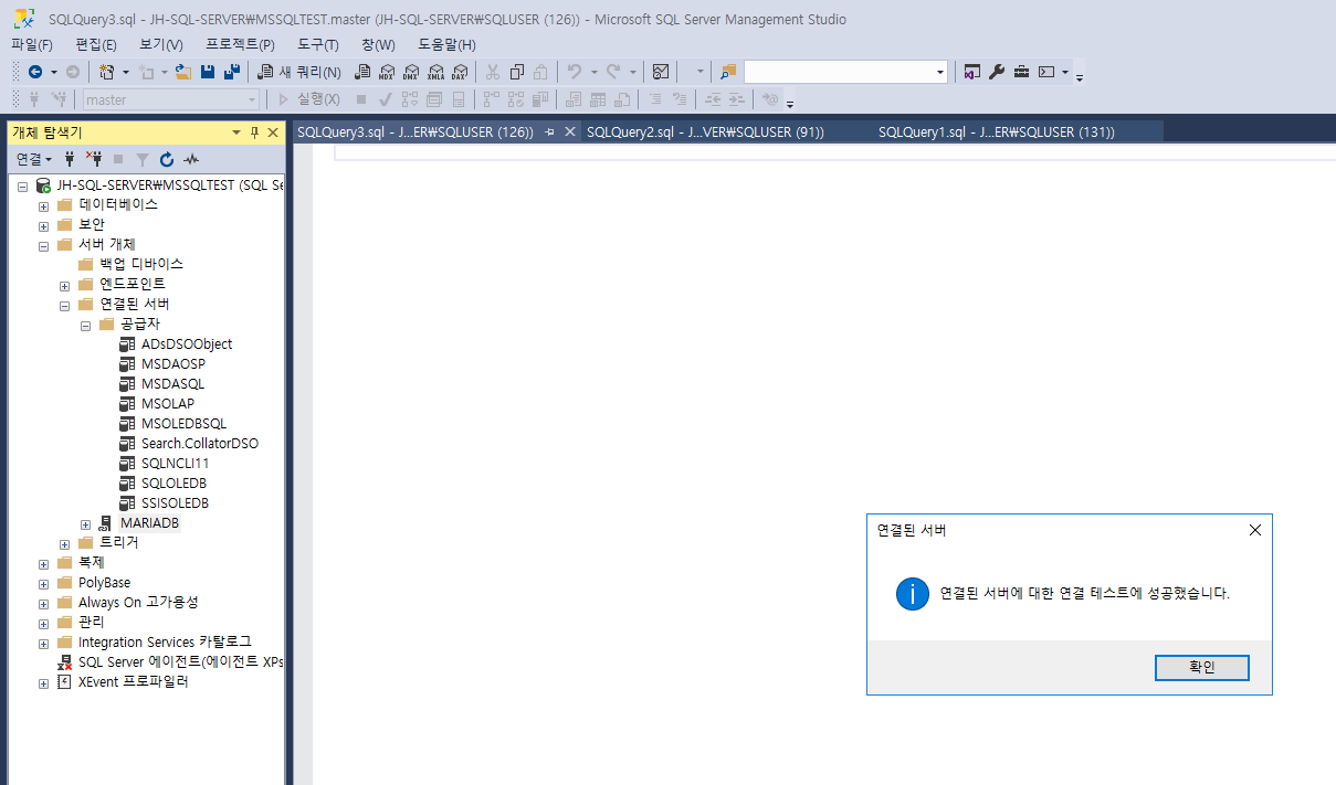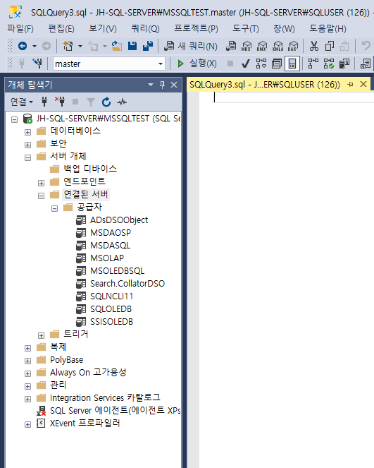 서버 개체 -> 연결된 서버 우클릭 -> 새 연결된 서버