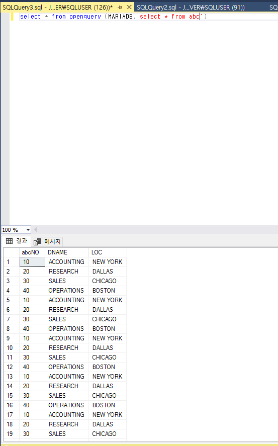 ▶ MARIADB 쿼리 조회 (Openquery 사용)