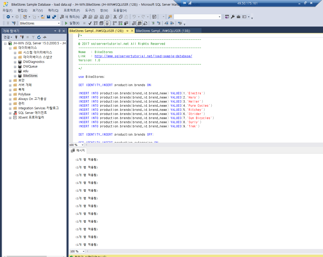 BikeStores Sample Database - load data.sql – 이 파일은 테이블에 데이터를 삽입하기 위한 것입니다.