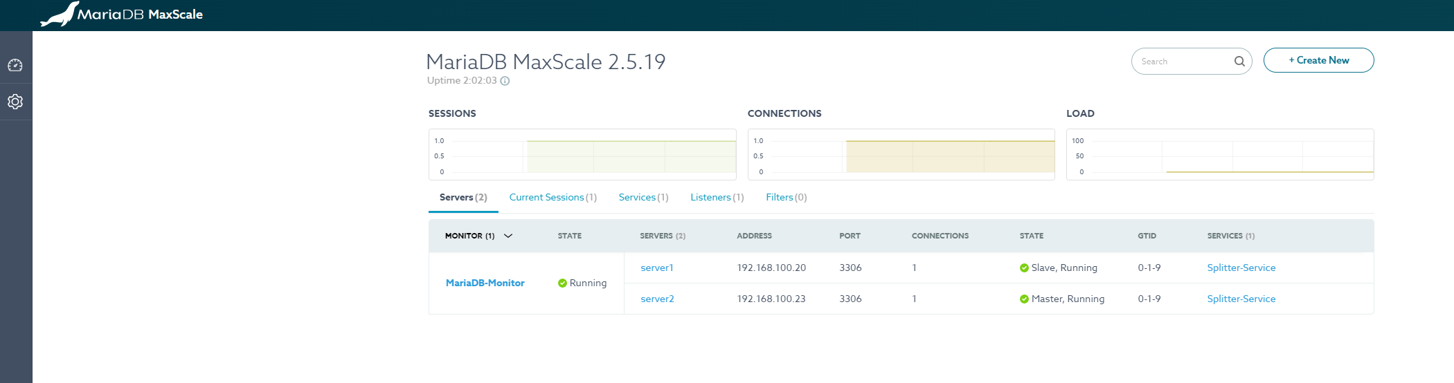 │ server2 │ 192.168.100.20 │ 3306 │ 0 │ Running │ │