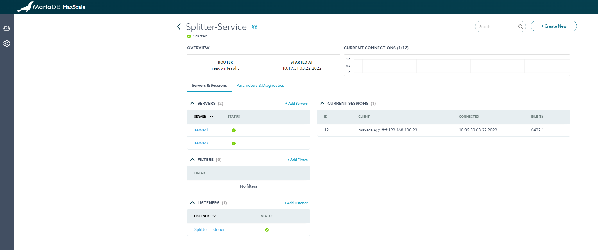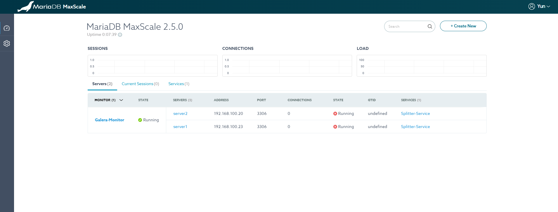 │ server1 │ 192.168.100.23 │ 3306 │ 0 │ Running │ │