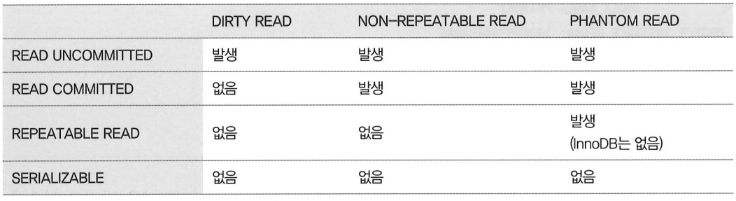 ※ 일반적인 온라인 서브스 용도에서는 READ COMMITTED와 REPEATABLE READ 중 하나를 사용합니다.
