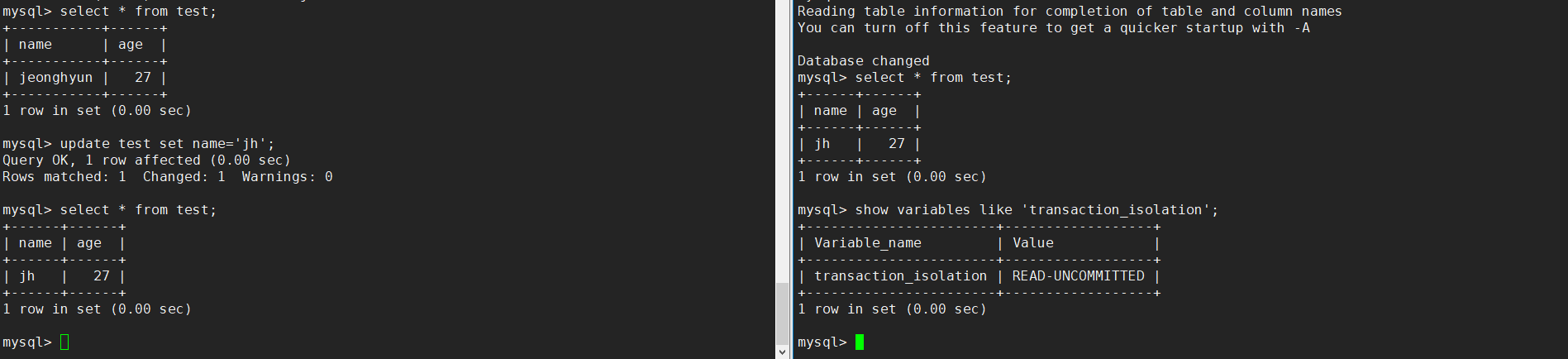 mysql> set global transaction_isolation='READ-UNCOMMITTED';
