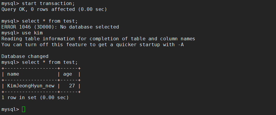 ※ 한 세션에서 트랜잭션(조회, 수정)을 진행하고 있으면 새로운 세션에서 접근 할 수 없다. (shared lock이 걸리기 때문에 select는 가능)