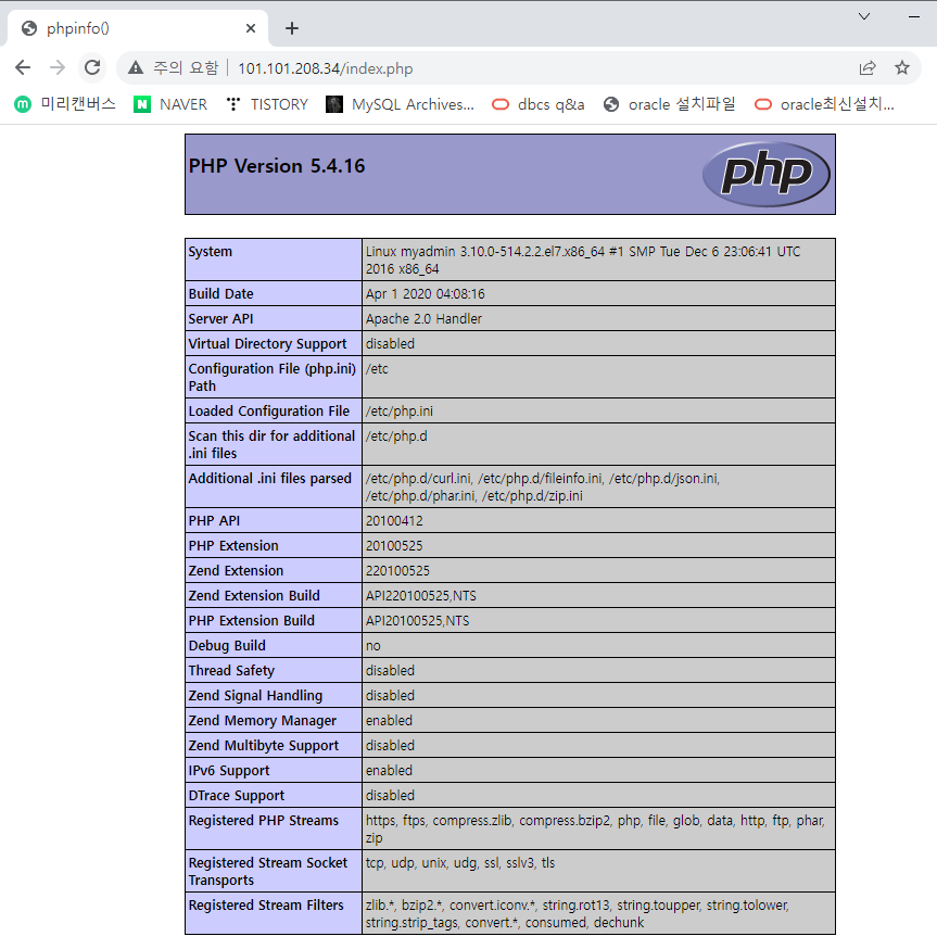 ※ php설치할 당시 phpMyAdmin을 구동하기 위한 관련 패키지를 진행하지 않은 접속이 불가합니다. 따라서 나머지 php관련 모듈 설치