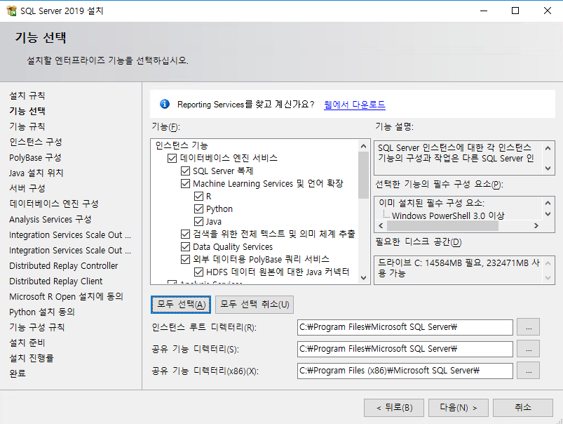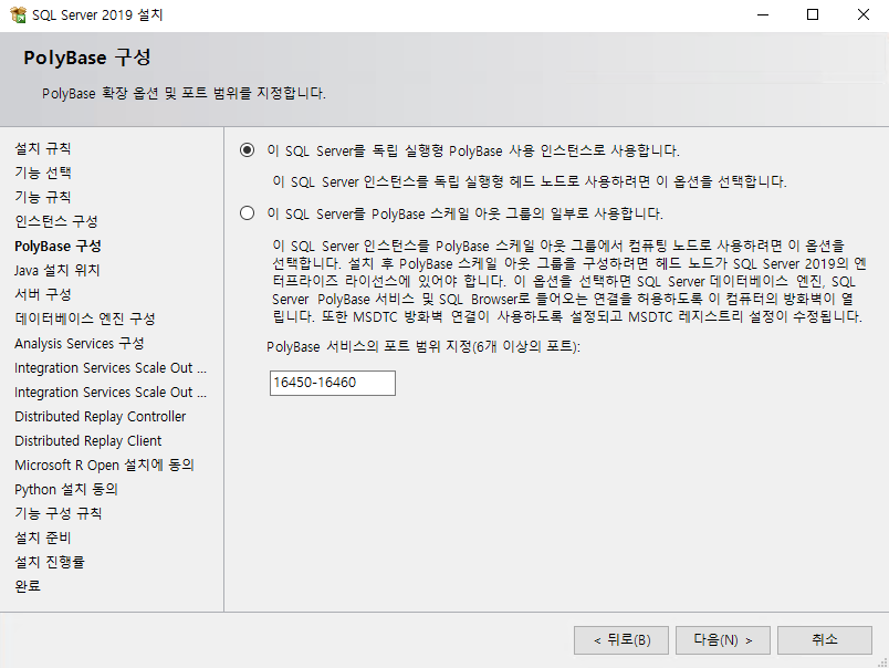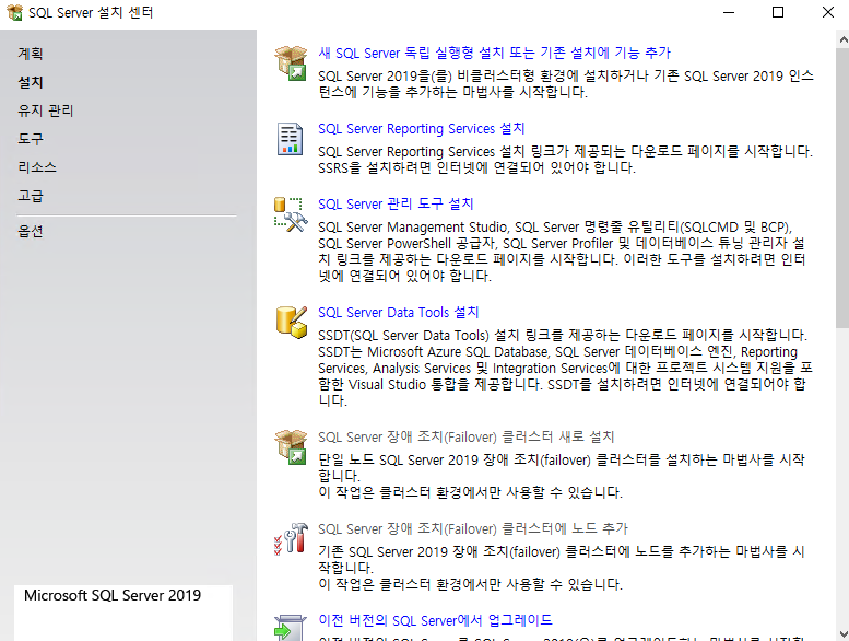 ■ 설치 탭 -> 새 SQL Server 독립 실행형 설치 또는 기존 설치에 기능 추가 선택