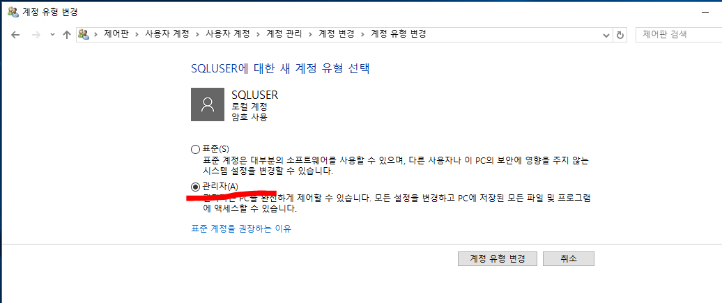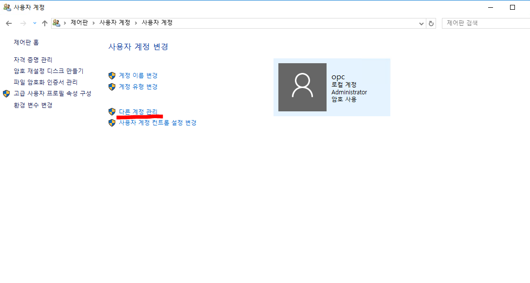 ■ 사용자 계정 -> 다른 계정 관리 -> 사용자 계정 추가