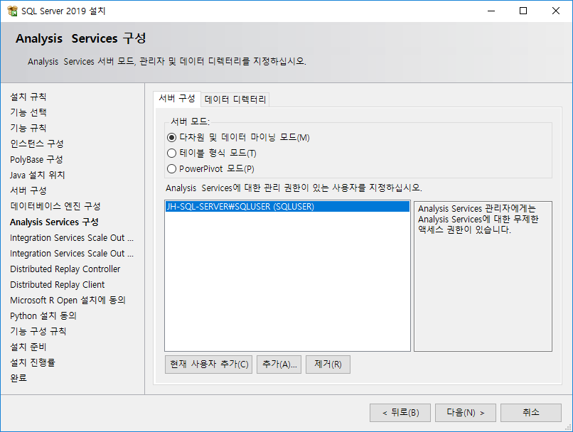 ■ 다차원 및 데이터 마이닝 모드에 현재 사용자 추가