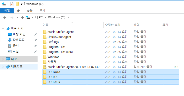 ■ 데이터파일, 로그파일. 백업 파일이 저장될 폴더 생성