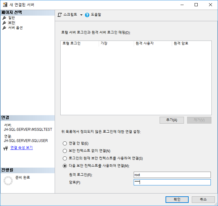 서버 개체 -> 연결된 서버 우클릭 -> 새 연결된 서버